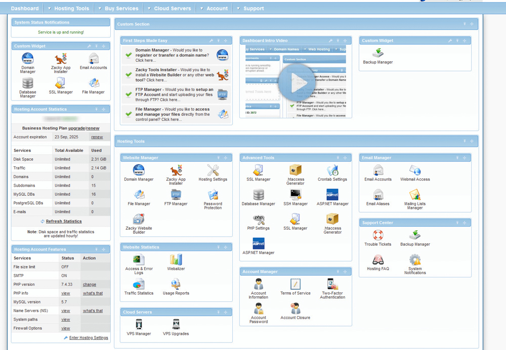 Clicking the Login button will lead you to the AwardSpace hosting panel. It looks like this: