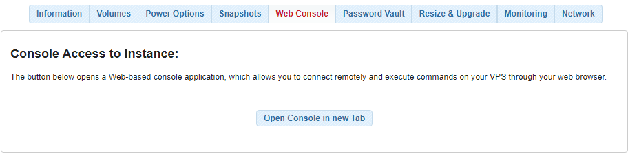 To launch the Web Console in your browser, click on the Open Console in New Tab link.