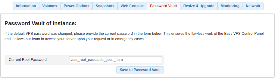 Password Vault is a password manager that stores your VPS root password in a private, safe repository.