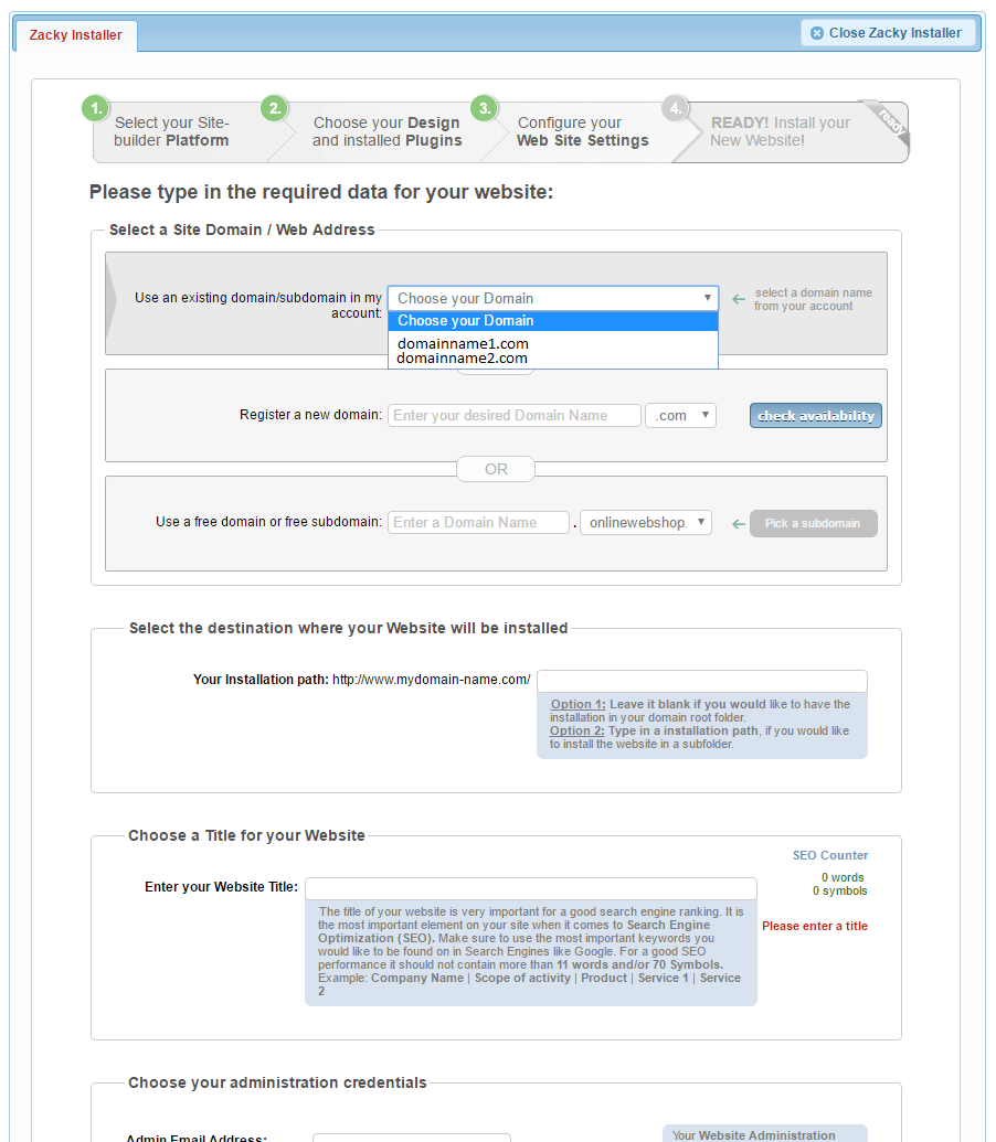Here you’ll be able to choose your domain, register a new one, or pick a free subdomain.