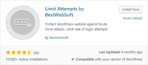 To limit the number of possible login attempts in WordPress, the easiest way is to install a plugin. And surprise, surprise! the most famous plugin for limiting the login attempts is called  Limit Attempts. It is created by BestWebSoft.