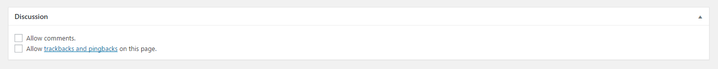 As we spoke already, sometimes you will want to disable the comments for certain pages or posts. To do this go to the post editing page and find the Discussion tab. It should be under most of the editing tabs. So, scroll down, till you find it and uncheck the Allow comments and Allow trackbacks and pingbacks.
