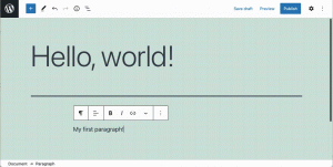 To add a second paragraph to your post or page, simply repeat the steps you took to add your first one. Namely, click on the “+” button, choose the paragraph block, and start typing: